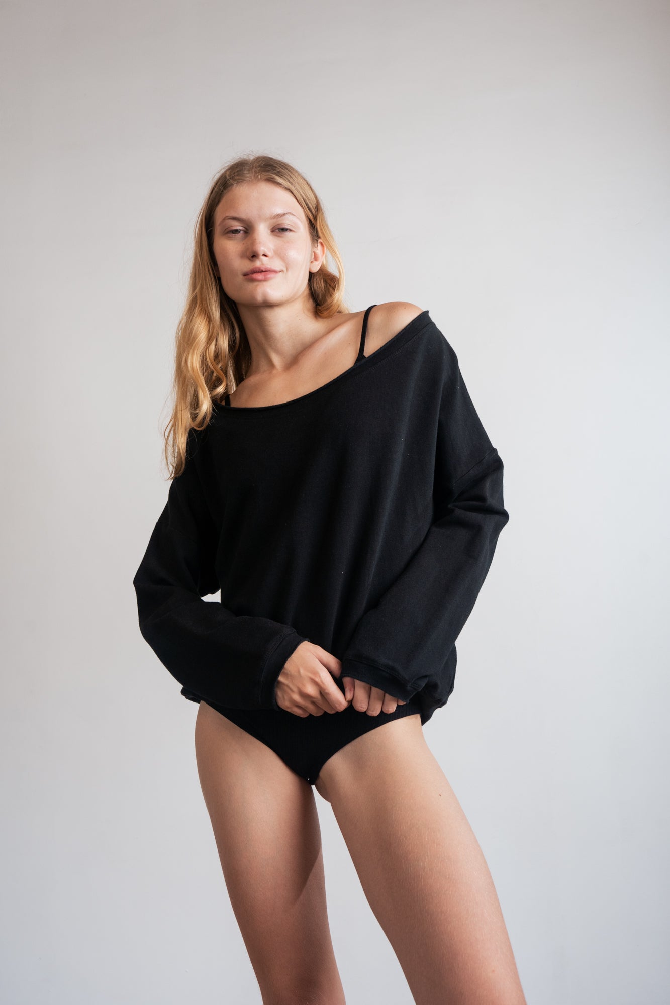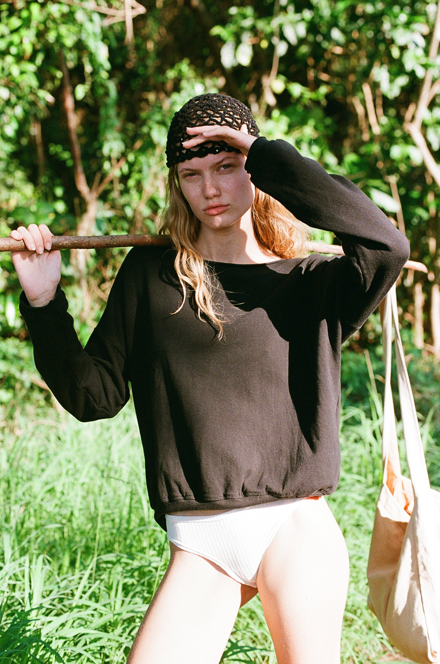 Experience everyday comfort with the NEST Crop Tee. Crafted from sustainable and breathable bamboo fleece, this sweater feels ultra soft and cozy. Its stylish boat neck and ribbed details on the neck, wrists, and bottom add a charming touch, making it perfect for any casual occasion. Soft, pretty, and designed for all-day wear, this beautiful sweater is your new go-to for effortless, playful style.