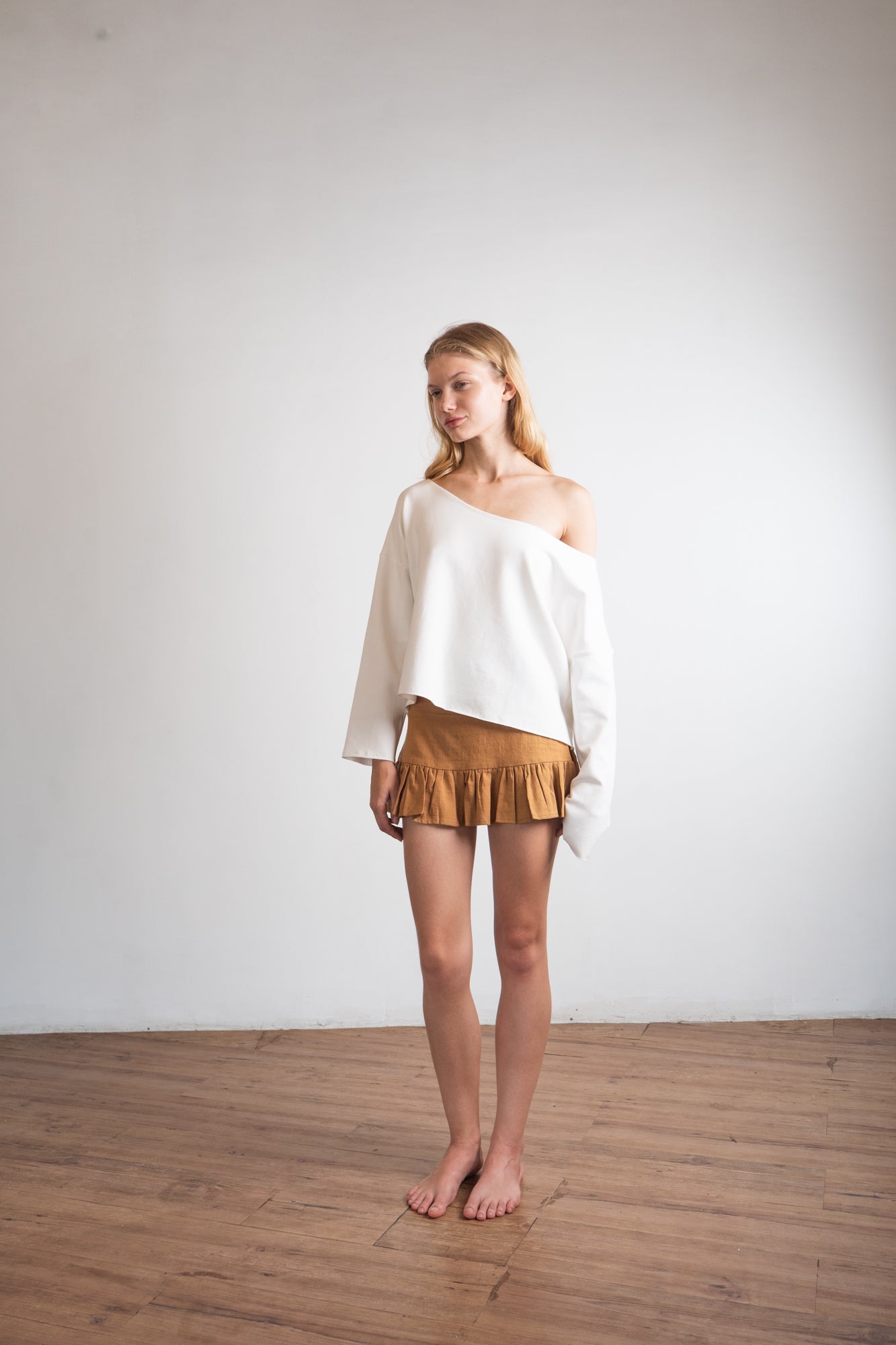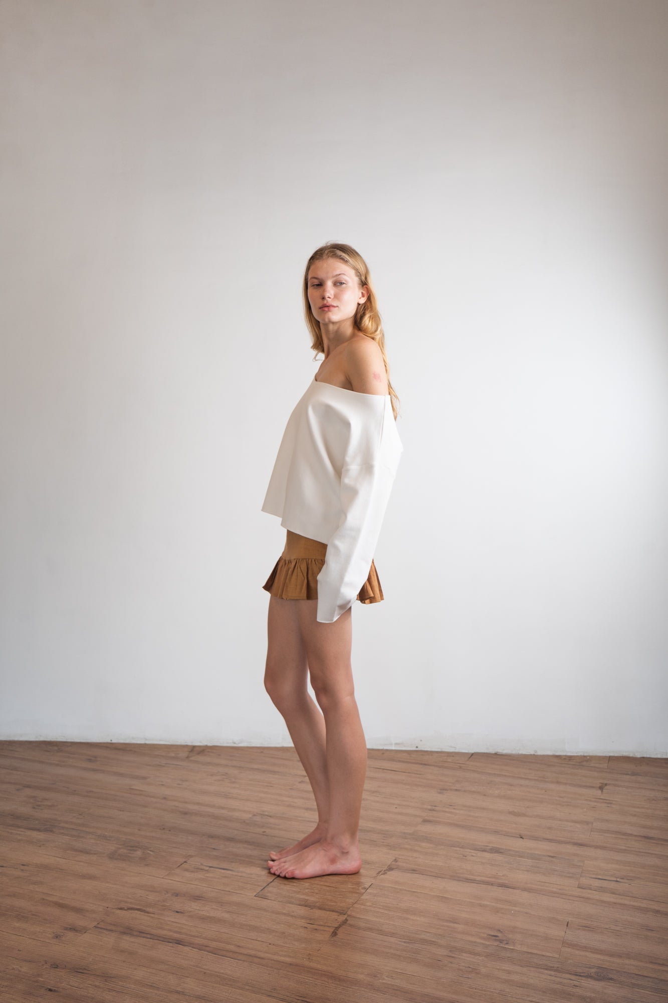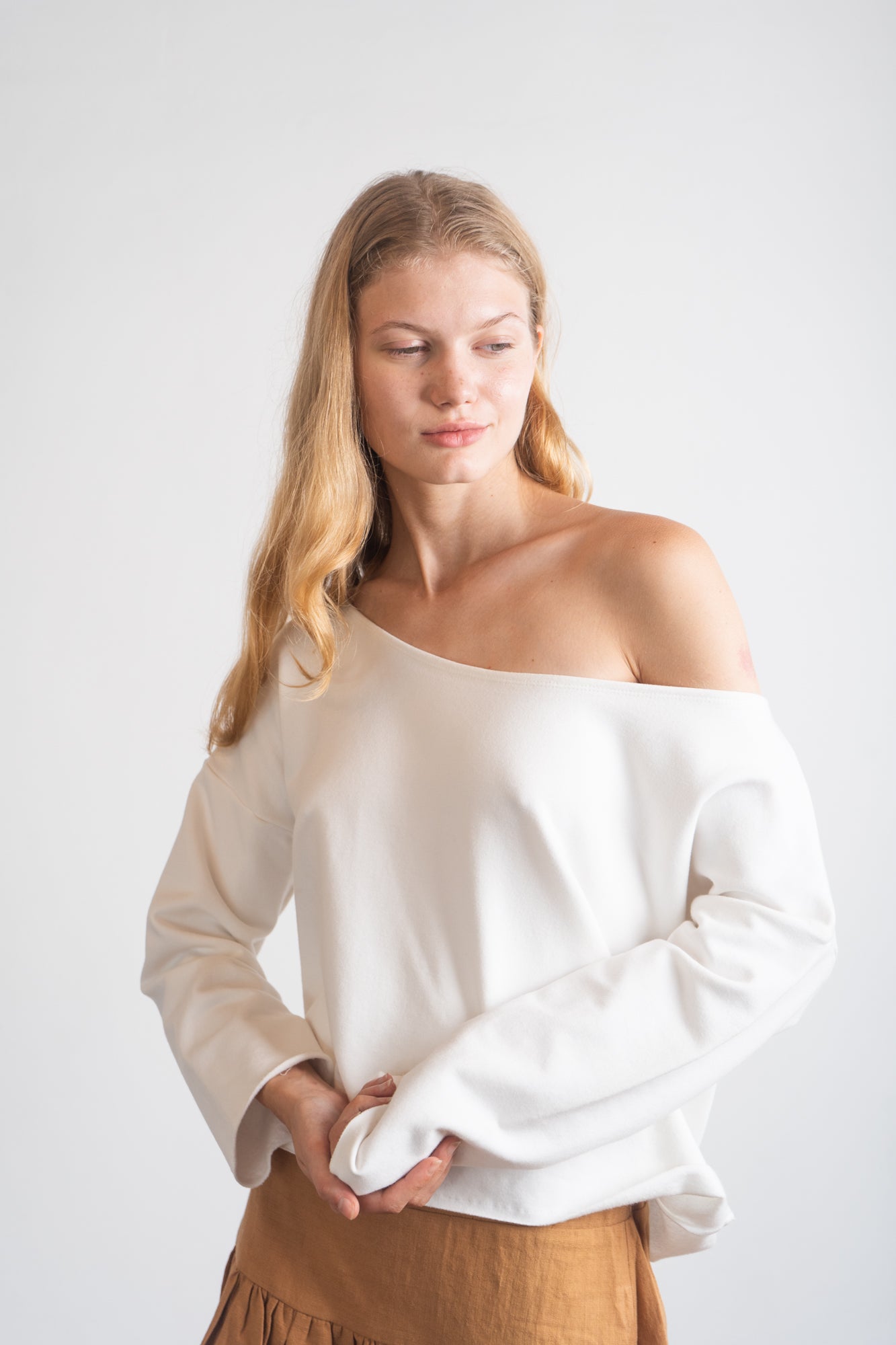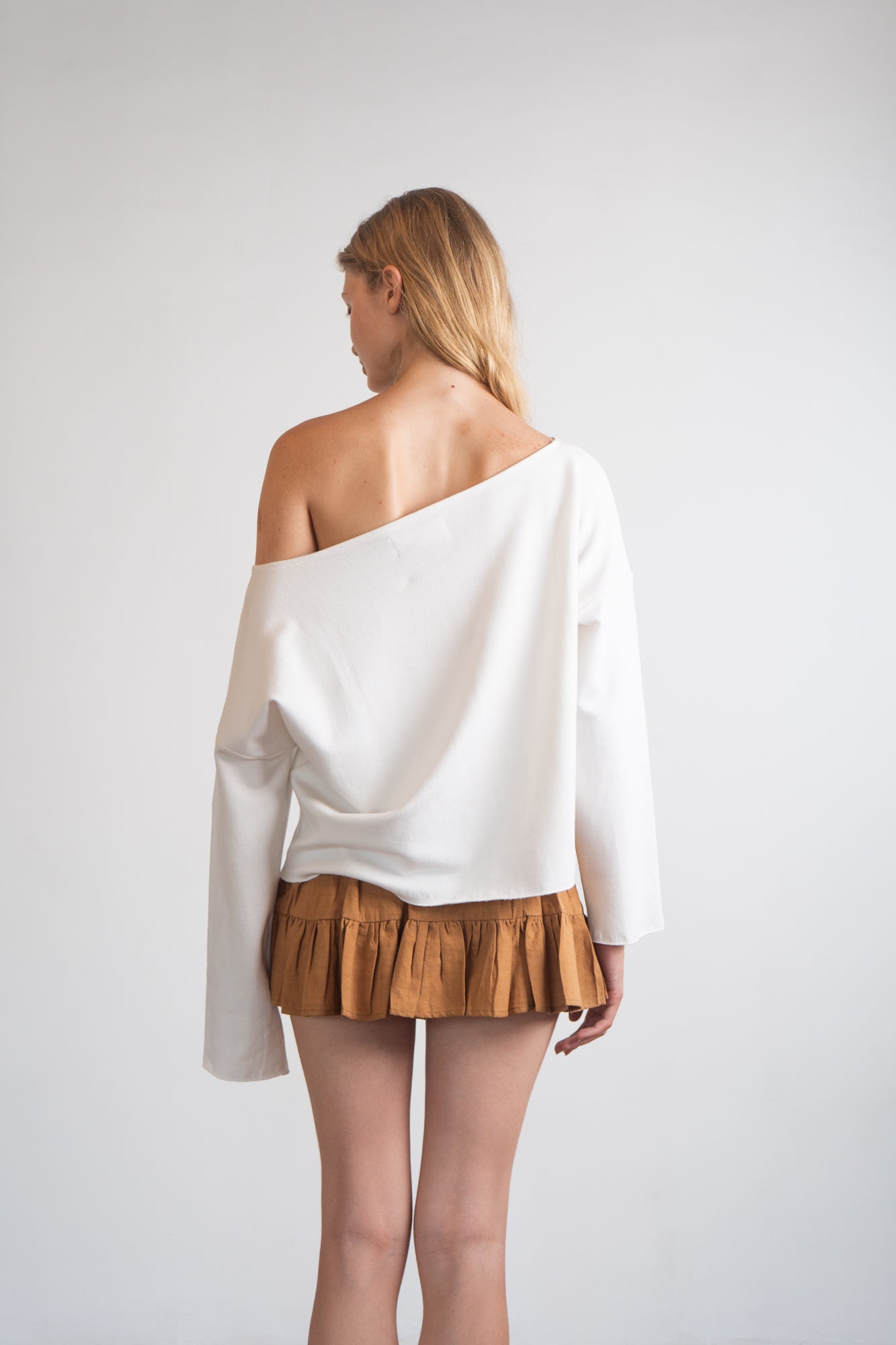 Cozy up in the SHOFI EDGE TOP Natural, crafted from sustainable bamboo fleece with OEKO-TEX® certifications, that feels as soft as a hug. Its short sweater design with an open neck and charming raw edges adds a playful touch to your casual look. Perfect for staying warm and super cute all day long!