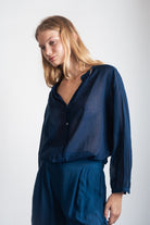The essential sustainable shirt in every woman's wardrobe: the Moon shirt! Made with the finest organic cotton voile and handmade in our Balinese workshop, this shirt is not only a conscious choice but also stylish. The natural dye derived from indigo leaves gives it a unique touch. To keep it in its best condition, we recommend hand washing it in cold water and avoiding harsh bleach and drying methods. Choose this shirt to show your love for the planet and your unique style.