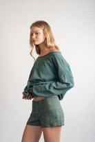 ECOLINEN shorts crafted from eucalyptus fibers, naturally dyed as shown paired with a bandeau top. Produced in small Balinese workshops that uphold fair trade practices, using the finest tailors and seamstresses. Designed for a slim fit with exceptional softness, offering superior comfort. To preserve quality and the environment, wash in cold water without bleach or tumble drying.