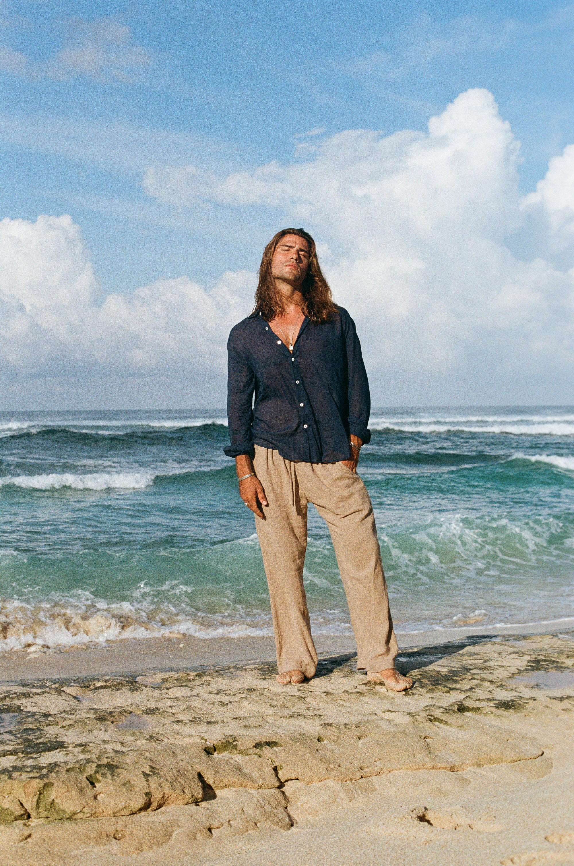 This men's long sleeve shirt is made from high-quality organic cotton voile, offering a lightweight and breathable design for superior comfort. Its sleek, casual style makes it a timeless choice, perfect for staying cool and stylish in warm weather.