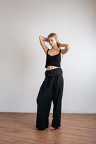 Experience unmatched comfort with our classic "fisherman" pants made from sustainable Eco Lyco linen TENCEL™ fabric. These pants have been used for centuries by fishermen and others, and are now known as Thai fisherman pants, fisherman pants, Thai pants, or กางเกงเล. They are unisex, one size fits all, and have been popular worldwide for their comfort, breathability, and ease of wear. Perfect for the beach, at home, during massages or consultations, for yoga or other exercises/sports, and even throughout pregnancy. These versatile pants require minimal care, are available in white, black, and buttermilk, and can be washed in cold water without bleach or a dryer. Invest in sustainable clothing and choose our timeless fisherman pants