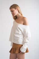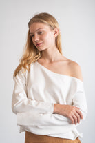Cozy up in the SHOFI EDGE TOP Natural, crafted from sustainable bamboo fleece with OEKO-TEX® certifications, that feels as soft as a hug. Its short sweater design with an open neck and charming raw edges adds a playful touch to your casual look. Perfect for staying warm and super cute all day long!